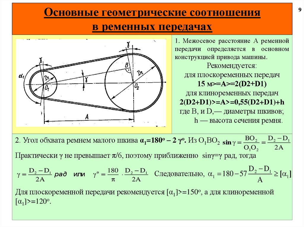 6. ОСНОВНЫЕ ГЕОМЕТРИЧЕСКИЕ СООТНОШЕНИЯ В РЕМЕННЫХ ПЕРЕДАЧАХ