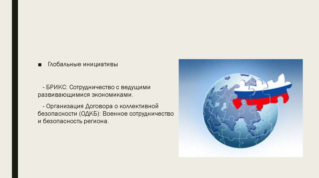 ■ Глобальные инициативы- БРИКС: Сотрудничество с ведущими