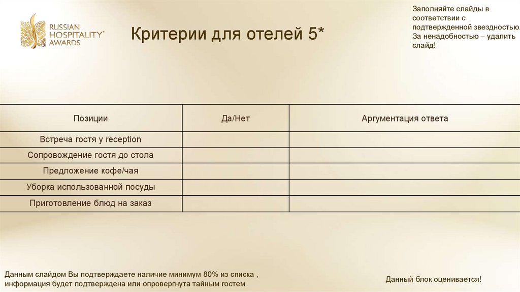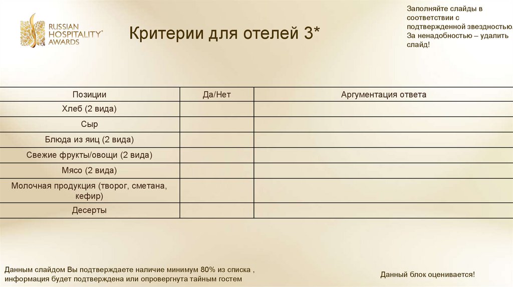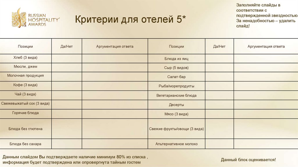 Данным слайдом Вы подтверждаете наличие минимум 80% из списка ,
