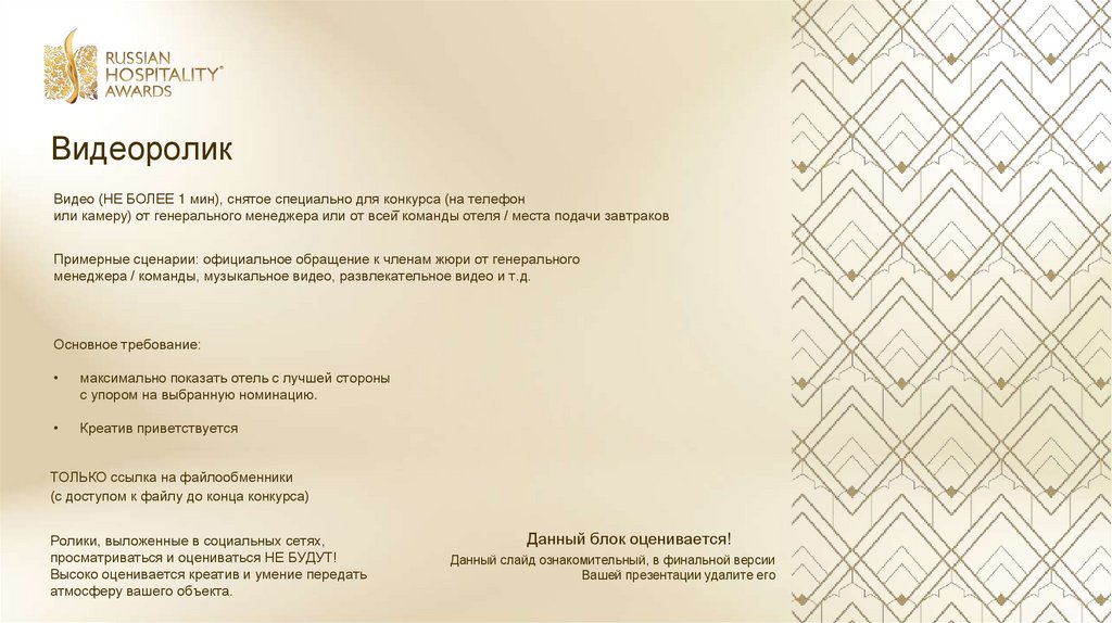 Примерные сценарии: официальное обращение к членам жюри от генерального