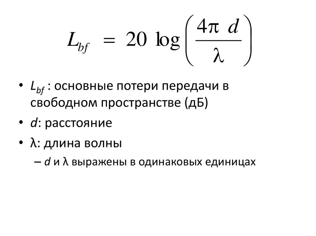 • Lbf = 32,4 + 20 log f + 20 log dгде: