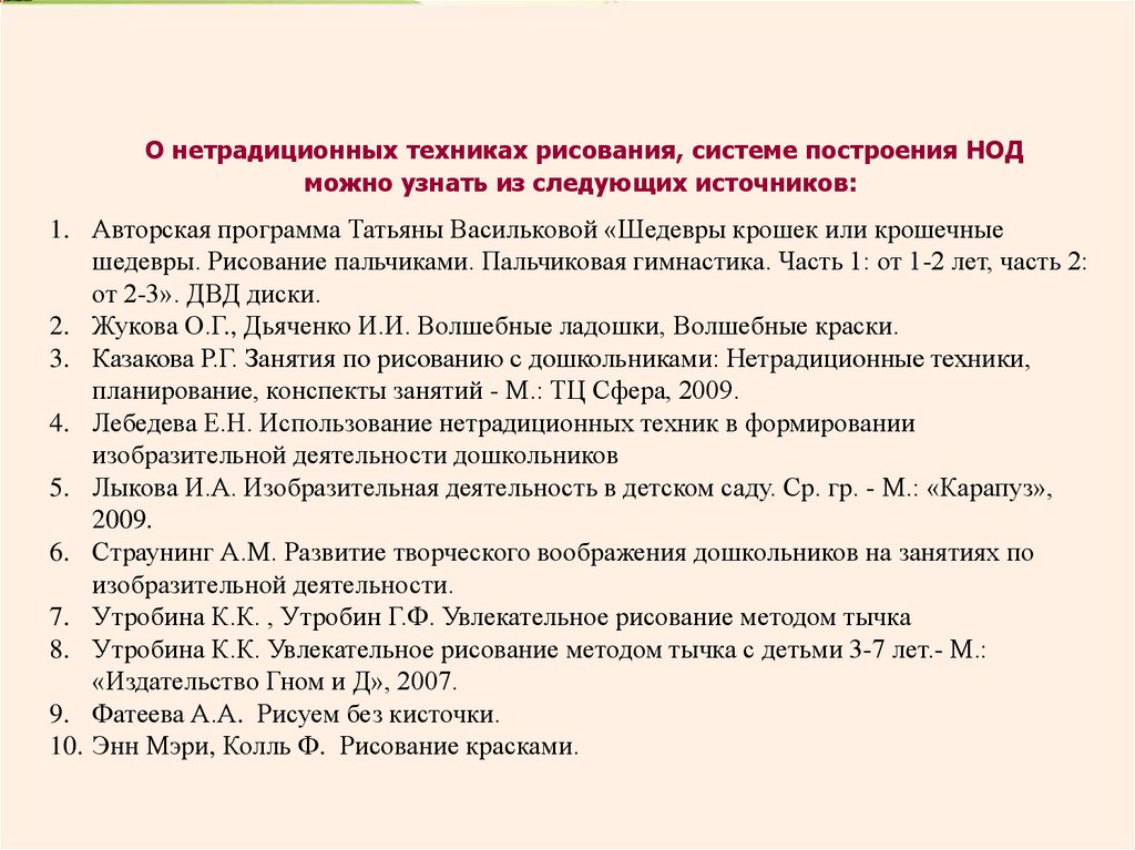 О нетрадиционных техниках рисования, системе построения НОДможно узнать из следующих источников: