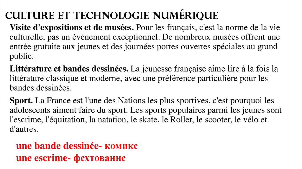 Culture et technologie numériqueVisite d'expositions et de musées. Pour les français, c'est la norme de la vie