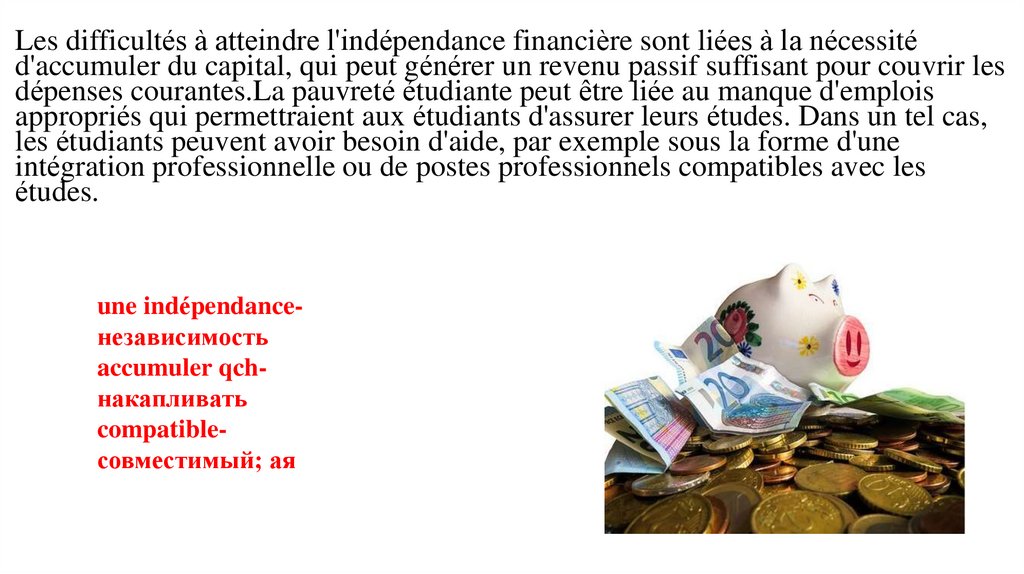 dépenses courantes.La pauvreté étudiante peut être liée au manque d'emplois
