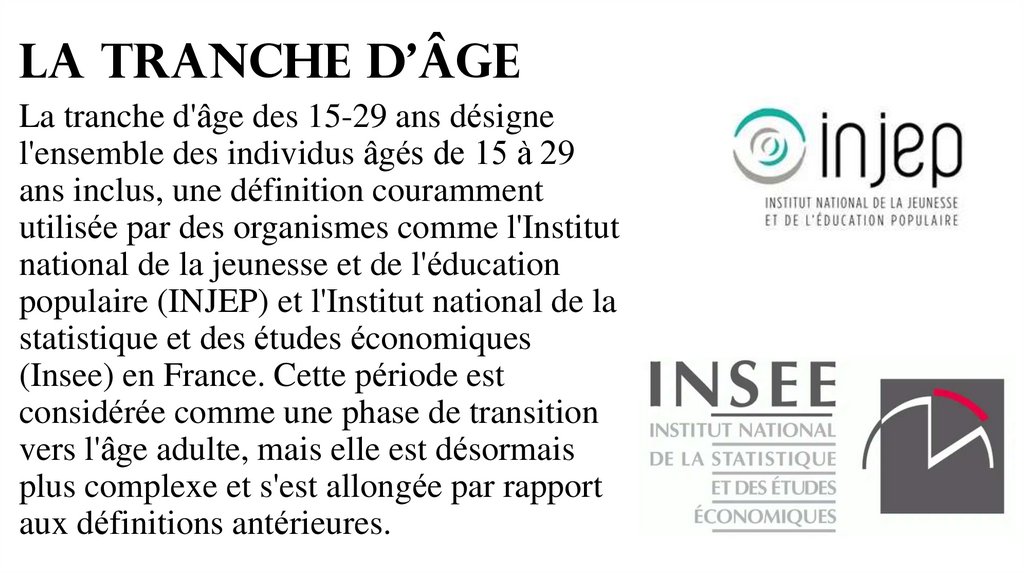 La tranche d'âgeLa tranche d'âge des 15-29 ans désigne