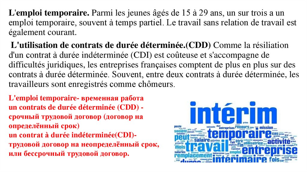 un contrats de durée déterminée (CDD) срочный трудовой договор (договор на