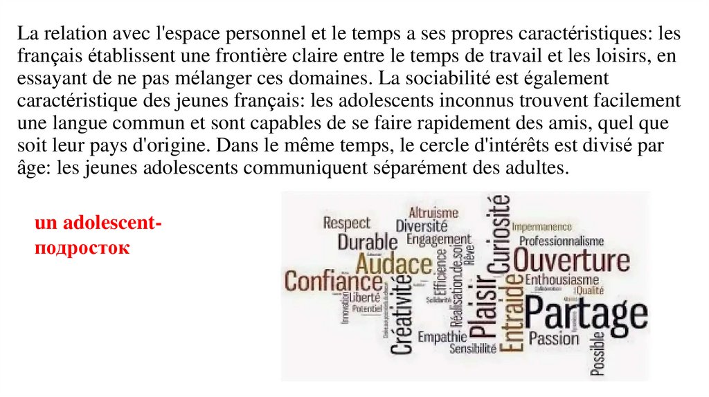 La relation avec l'espace personnel et le temps a ses propres caractéristiques: lesfrançais établissent une frontière claire entre le temps de travail et les loisirs, en