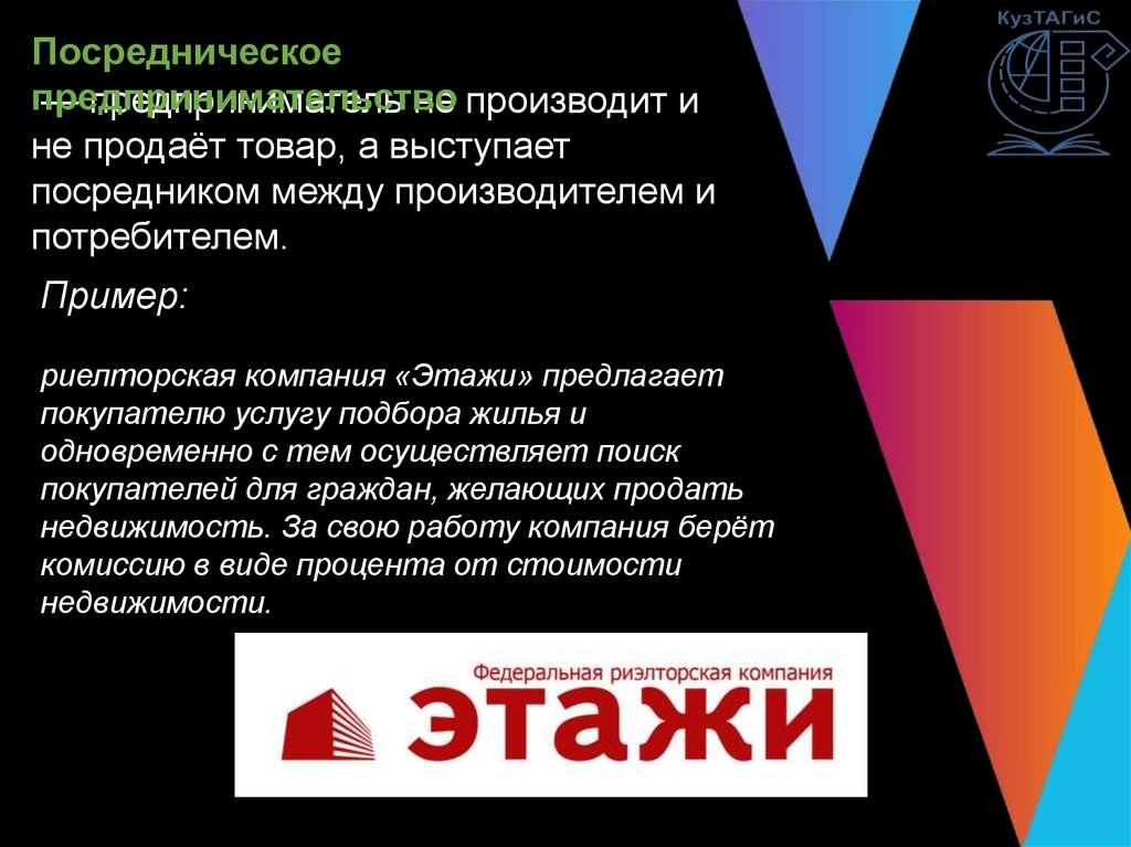 Коммерческое (торговое) предпринима— предприниматель выступает в роли