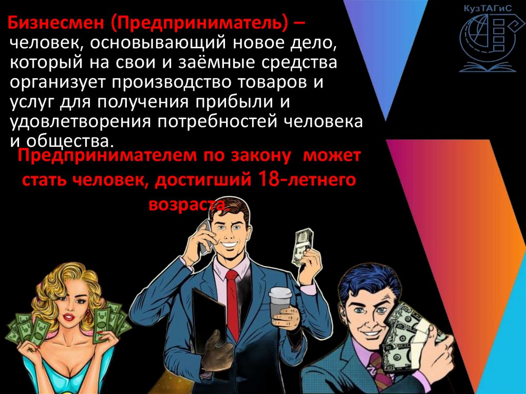 Бизнесмен (Предприниматель) –человек, основывающий новое дело,