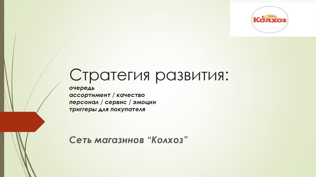1. Стратегия развития: очередь ассортимент / качество персонал / сервис / эмоции триггеры для покупателя