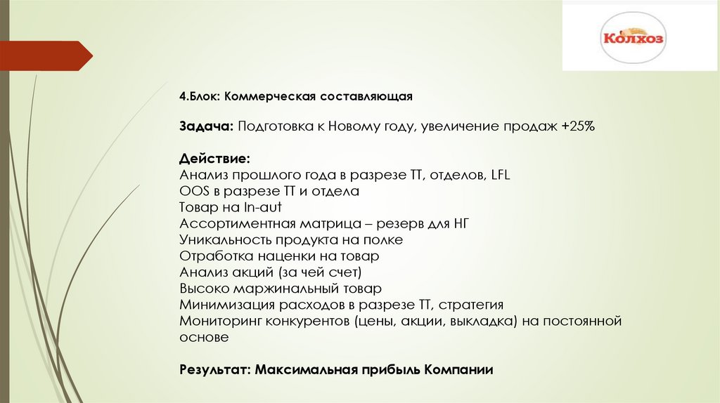 4.Блок: Коммерческая составляющаяЗадача: Подготовка к Новому году, увеличение продаж +25%