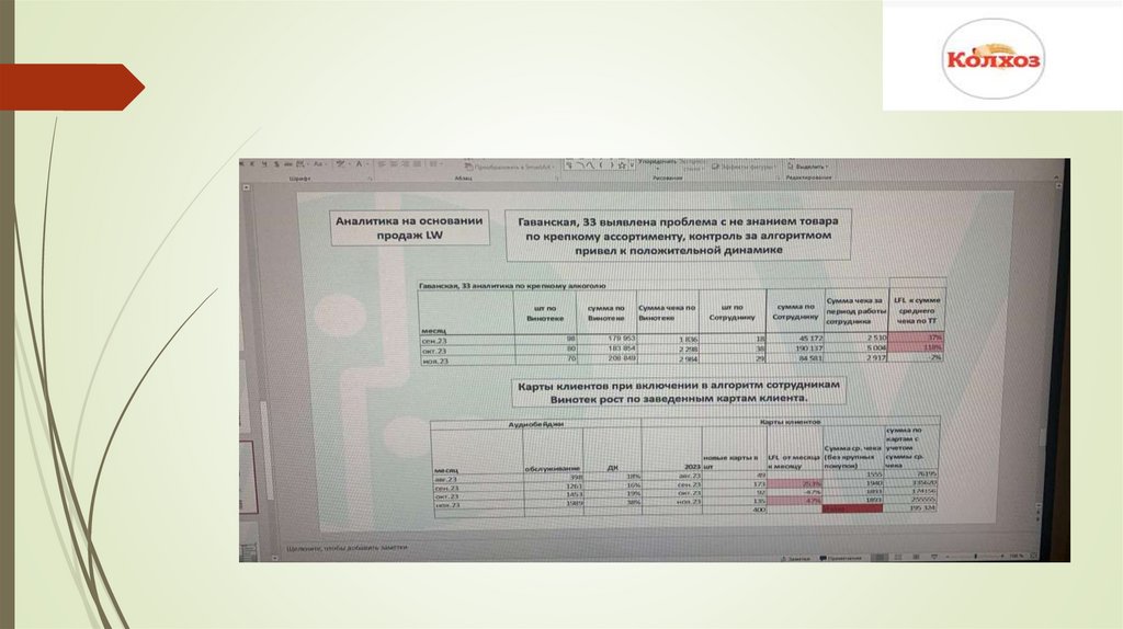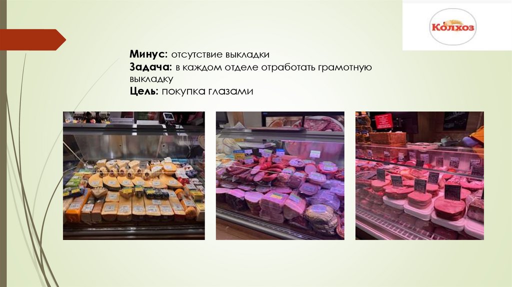 Минус: отсутствие выкладкиЗадача: в каждом отделе отработать грамотную