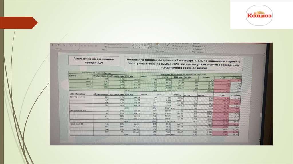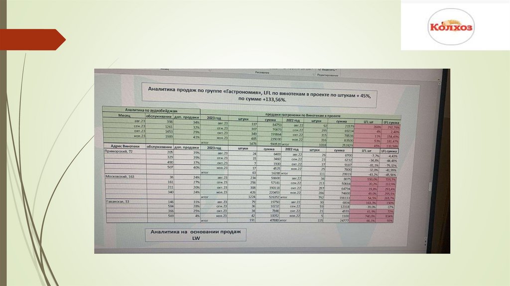 Анализ прошлого года в разрезе ТТ, отделов, LFL