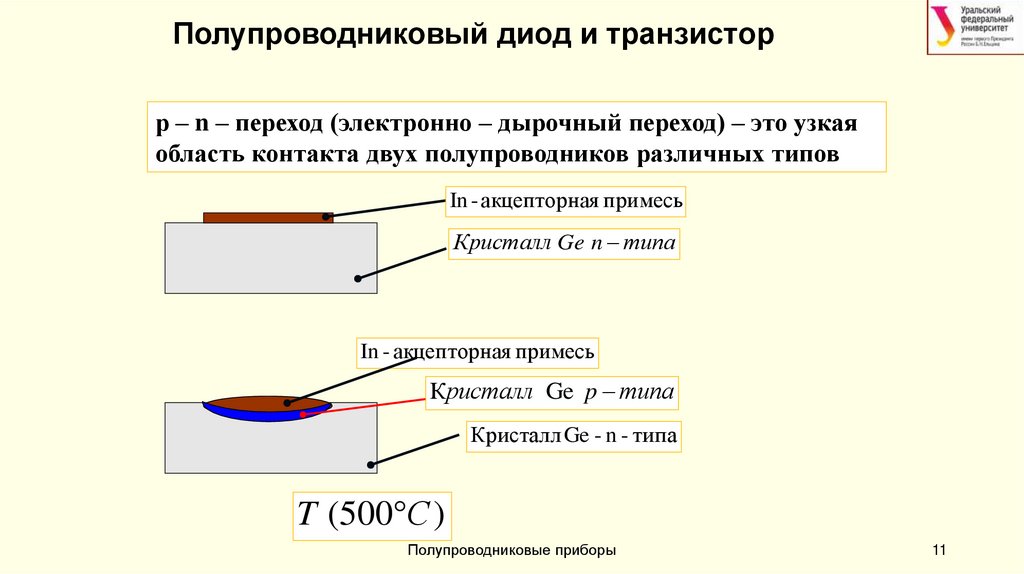 Полупроводниковый диод и транзисторр – n – переход (электронно – дырочный переход) – это узкая