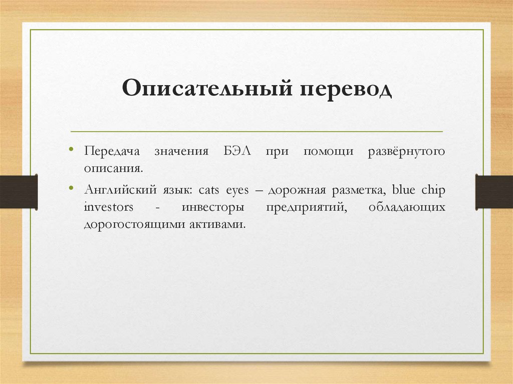 Описательный перевод• Передача значения БЭЛ при помощи развёрнутого