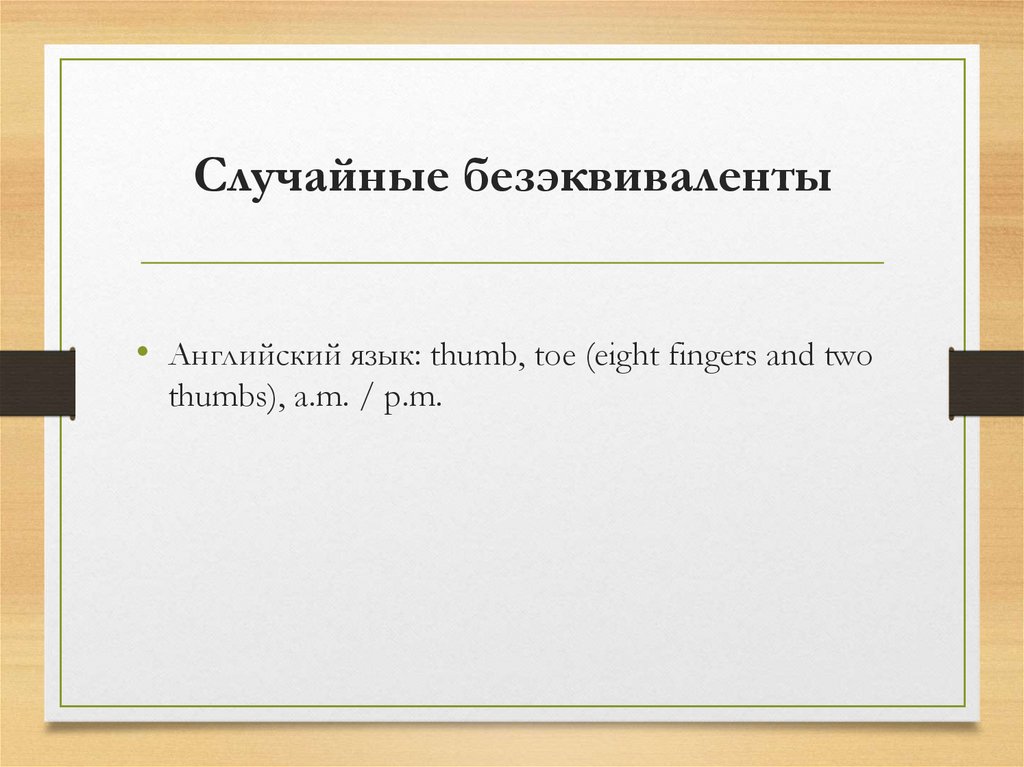 Случайные безэквиваленты• Английский язык: thumb, toe (eight fingers and two