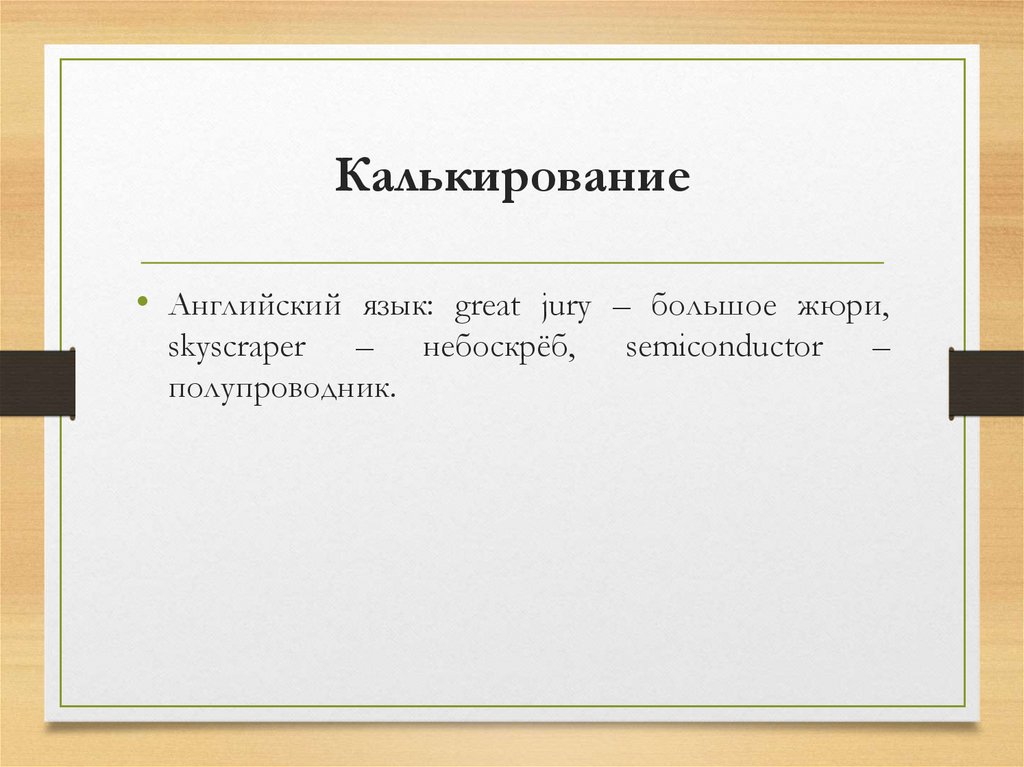 Калькирование• Английский язык: great jury – большое жюри,