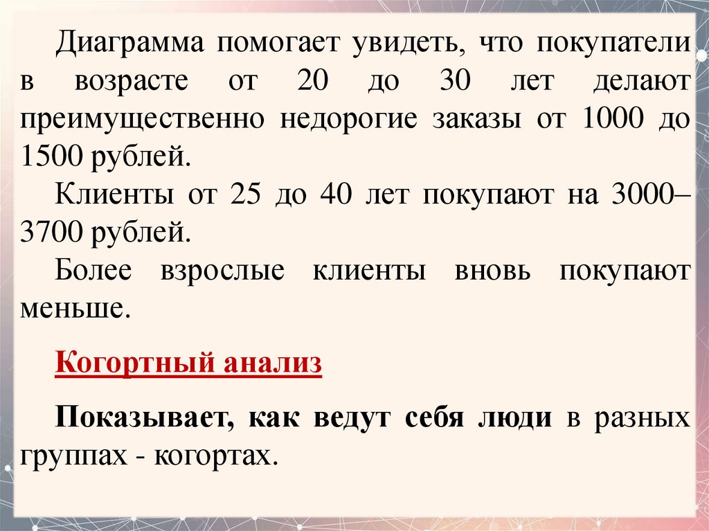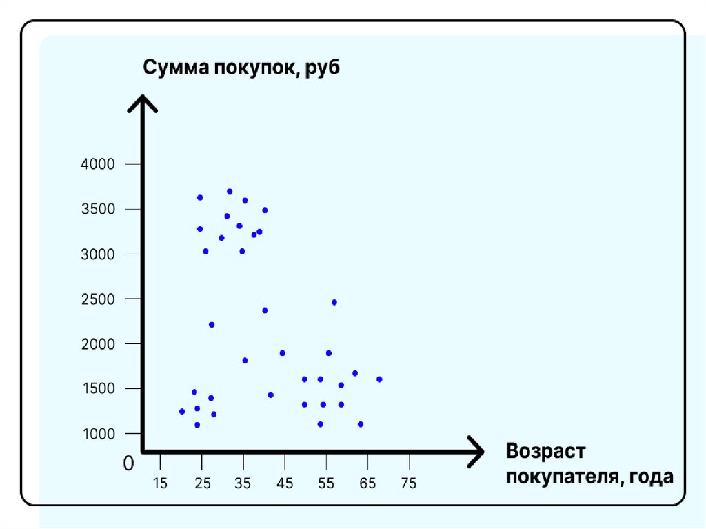 Диаграмма помогает увидеть, что покупателив возрасте от 20 до 30 лет делают