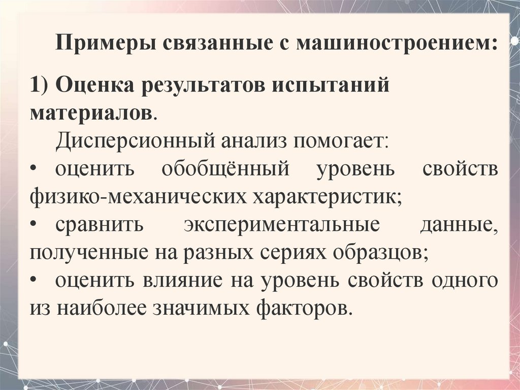 Примеры связанные с машиностроением:1) Оценка результатов испытаний