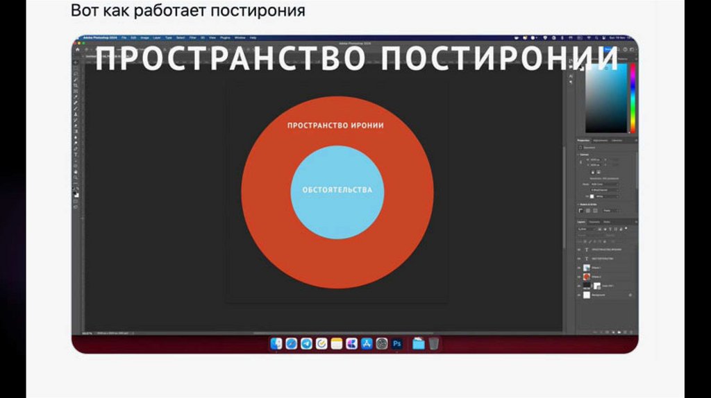 Постирония: шутка над шуткой. Говорю то, что имею в виду, но делаю это так,