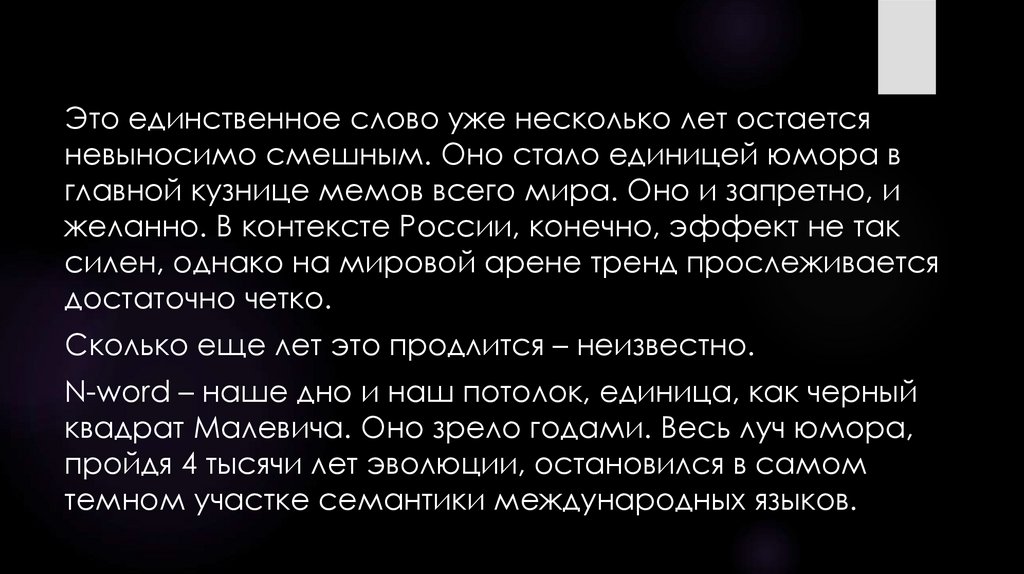 Это единственное слово уже несколько лет остаетсяневыносимо смешным. Оно стало единицей юмора в