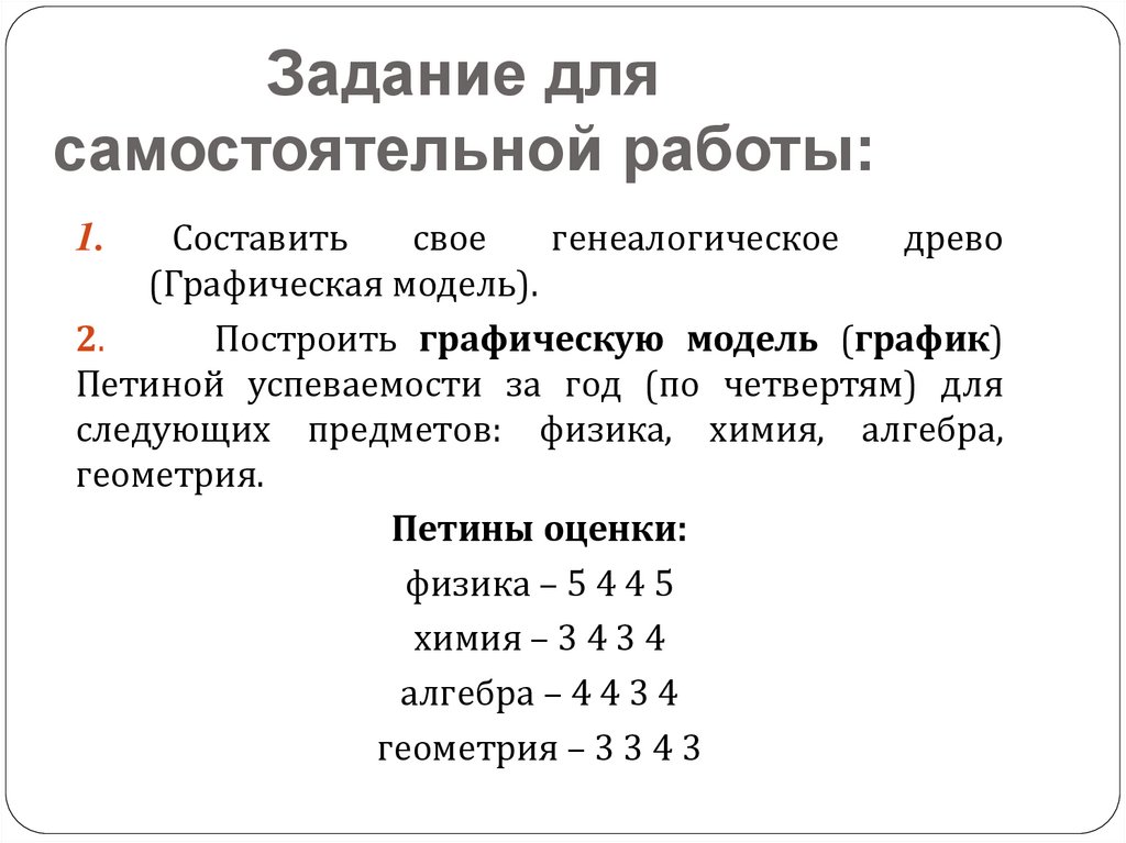 Задание длясамостоятельной работы: