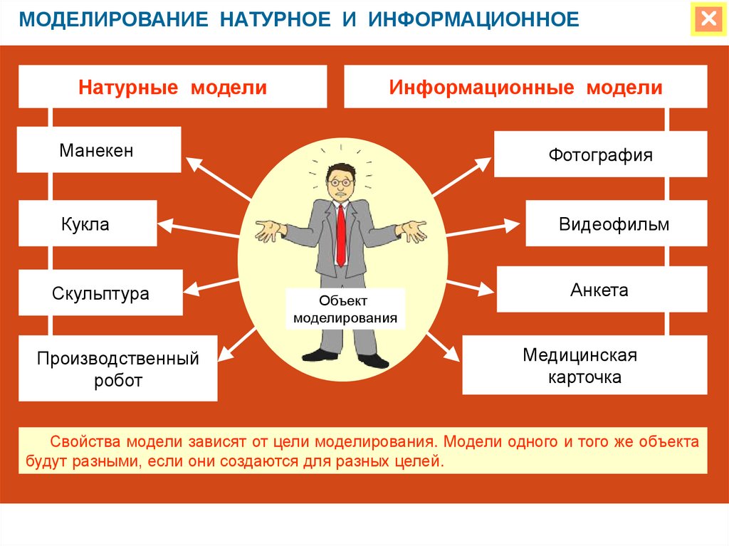 Свойства модели зависят от цели моделирования. Модели одного и того же объекта