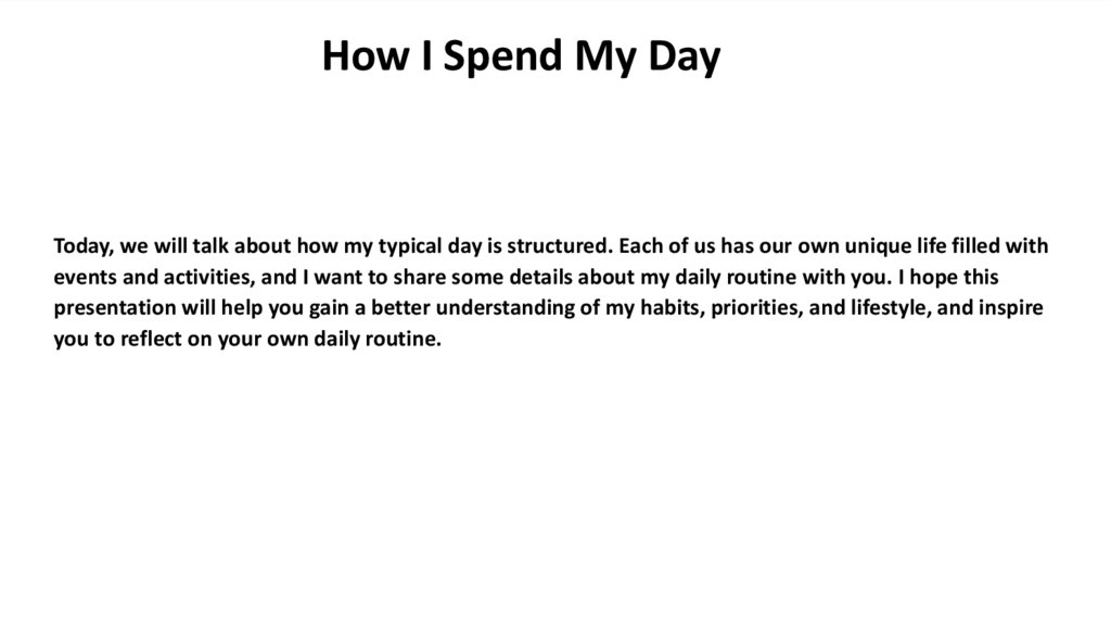 How I Spend My DayToday, we will talk about how my typical day is structured. Each of us has our own unique life filled with
