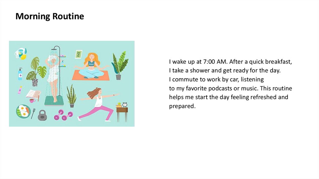 Morning RoutineI wake up at 7:00 AM. After a quick breakfast,
