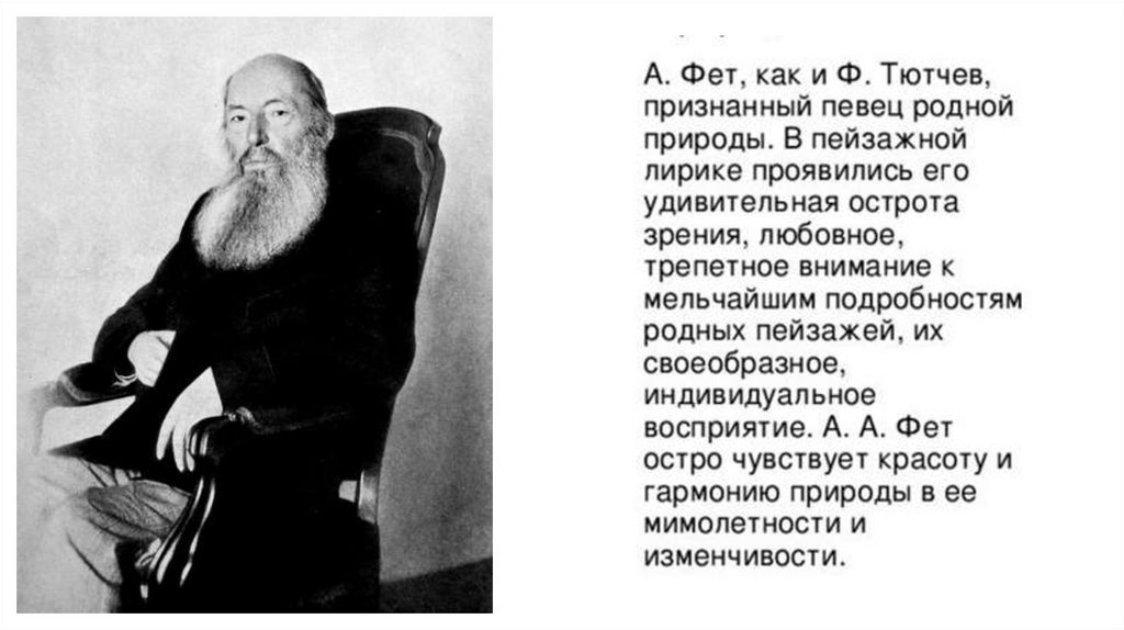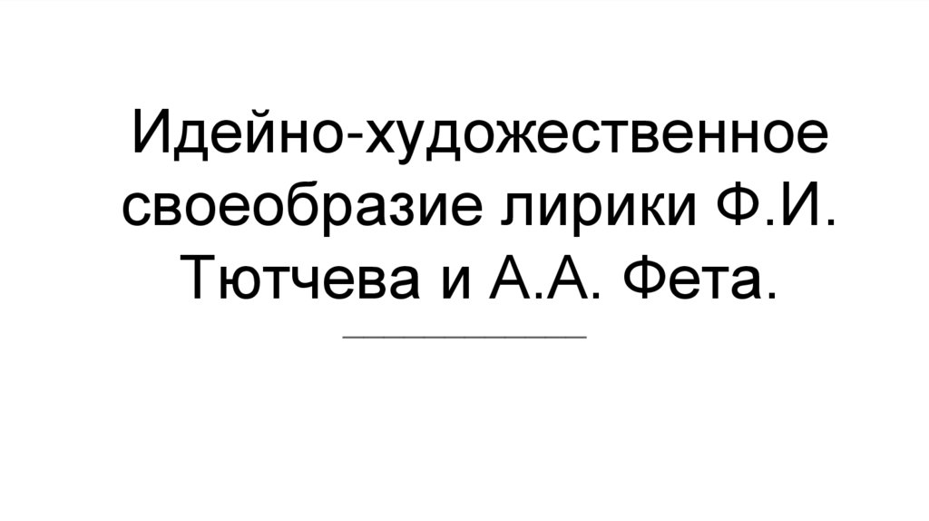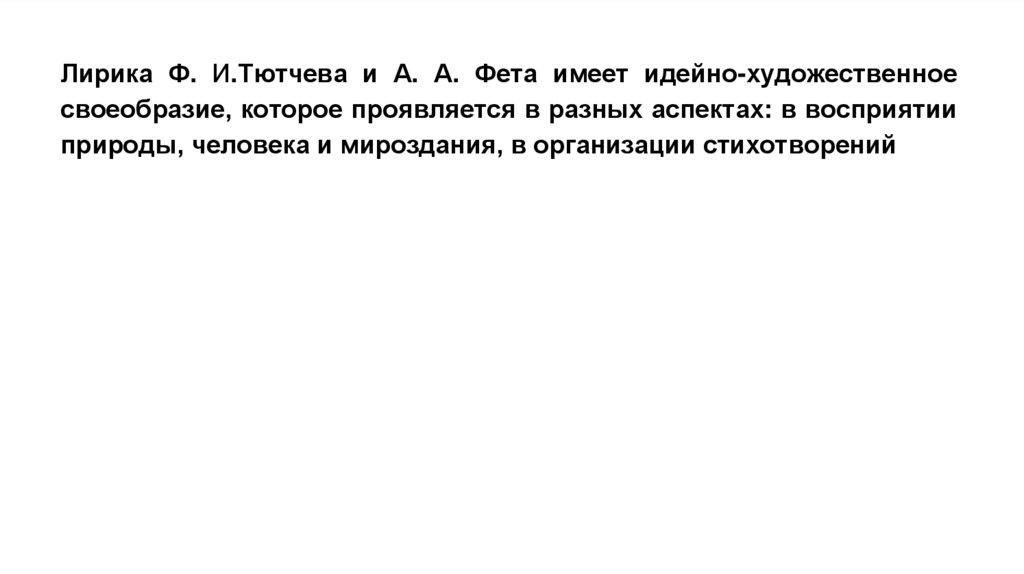 Лирика Ф. И.Тютчева и А. А. Фета имеет идейно-художественноесвоеобразие, которое проявляется в разных аспектах: в восприятии