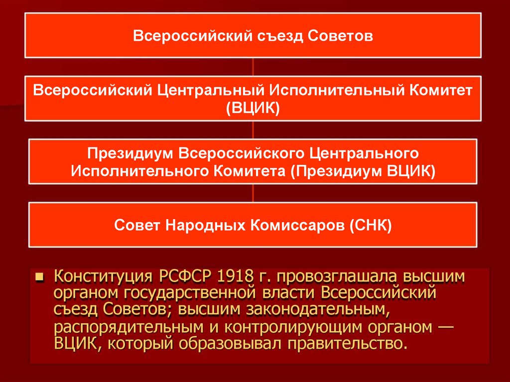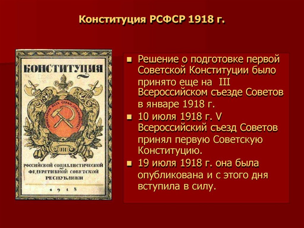 Декретом ВЦИК от 16 сентября 1918 г. учреждается первый советский