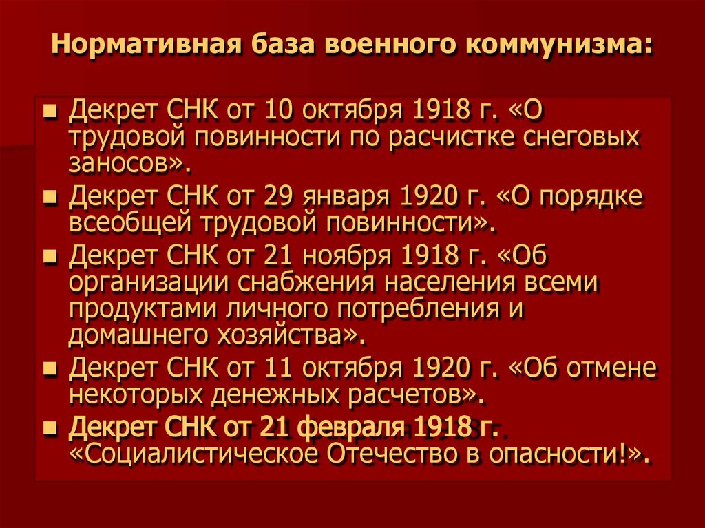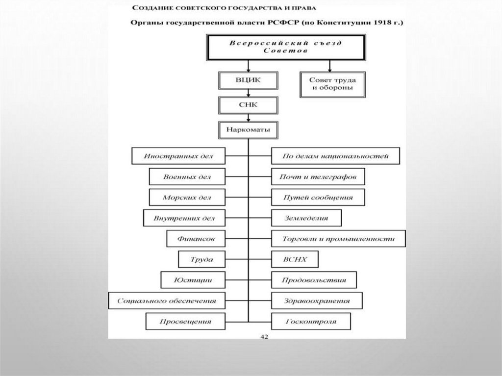 В начале марта 1918 г. Правительство предложило НКВДразработать и внести на рассмотрение СНК проект