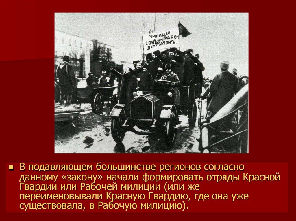 В подавляющем большинстве регионов согласноданному «закону» начали формировать отряды Красной