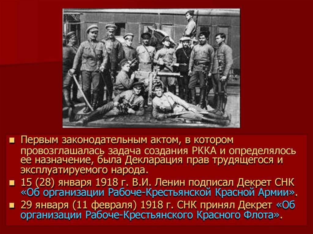 Первым законодательным актом, в которомпровозглашалась задача создания РККА и определялось