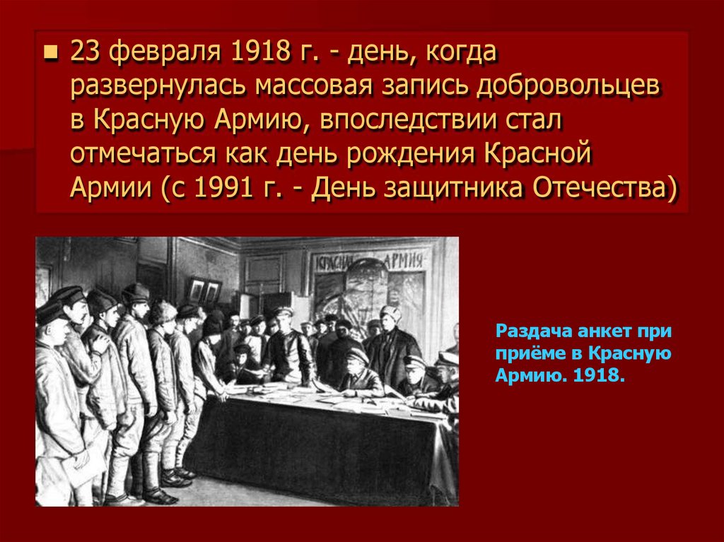 23 февраля 1918 г. - день, когдаразвернулась массовая запись добровольцев