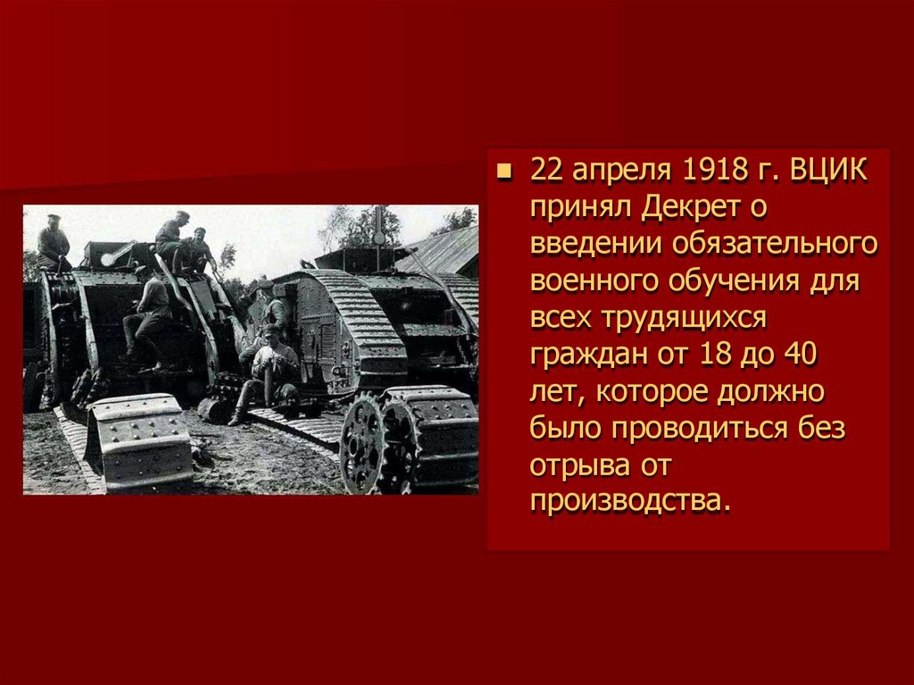 22 апреля 1918 г. ВЦИКпринял Декрет о