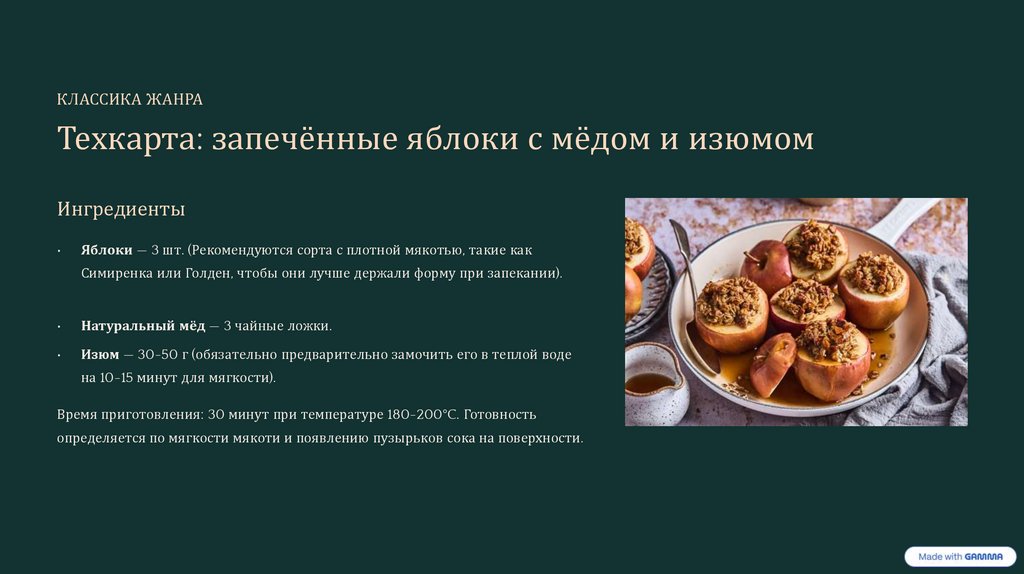 КЛАССИКА ЖАНРАТехкарта: запечённые яблоки с мёдом и изюмом