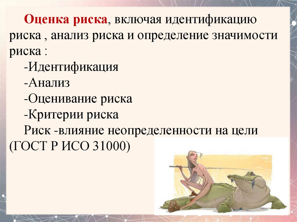 Оценка риска, включая идентификациюриска , анализ риска и определение значимости