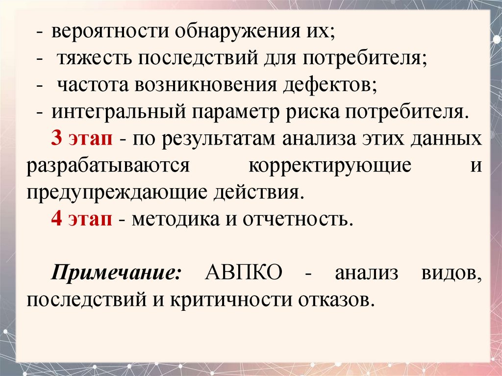 - вероятности обнаружения их;- тяжесть последствий для потребителя;