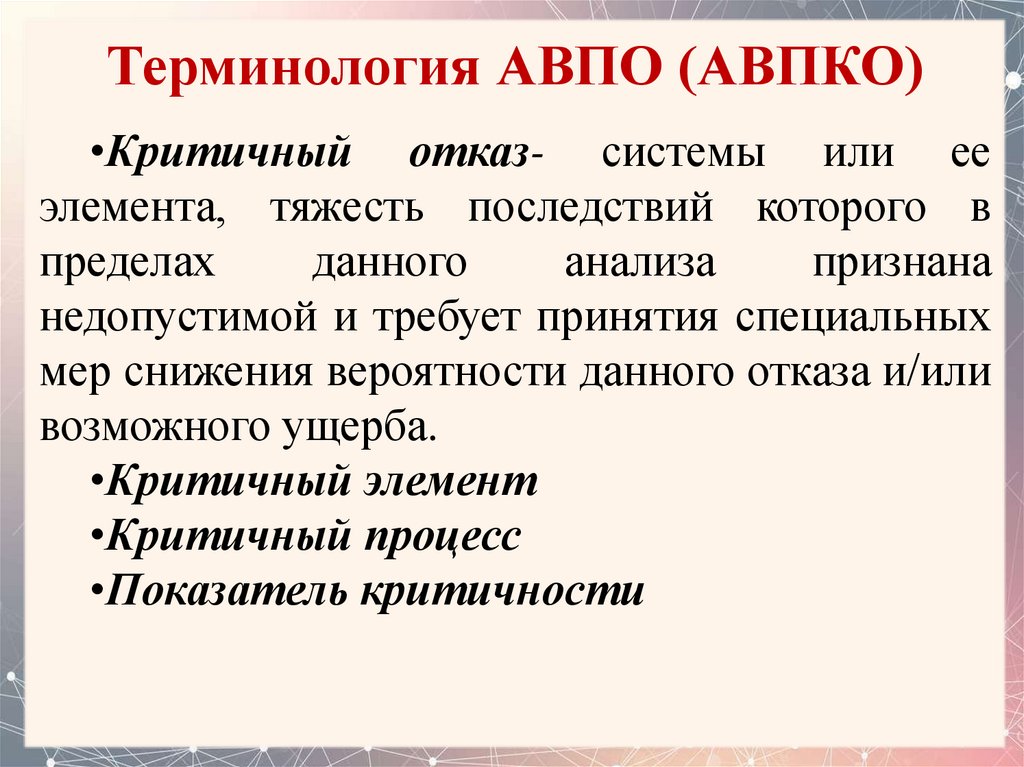 Терминология АВПО (АВПКО)•Критичный отказ- системы или ее