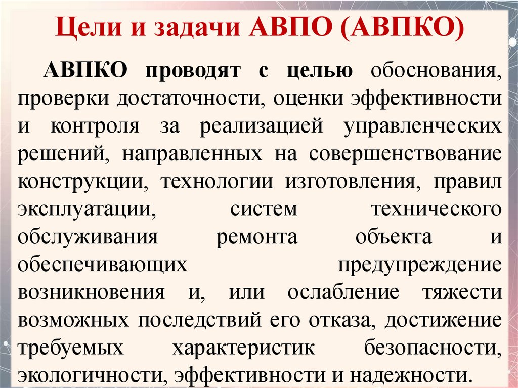 Цели и задачи АВПО (АВПКО)АВПКО проводят с целью обоснования,