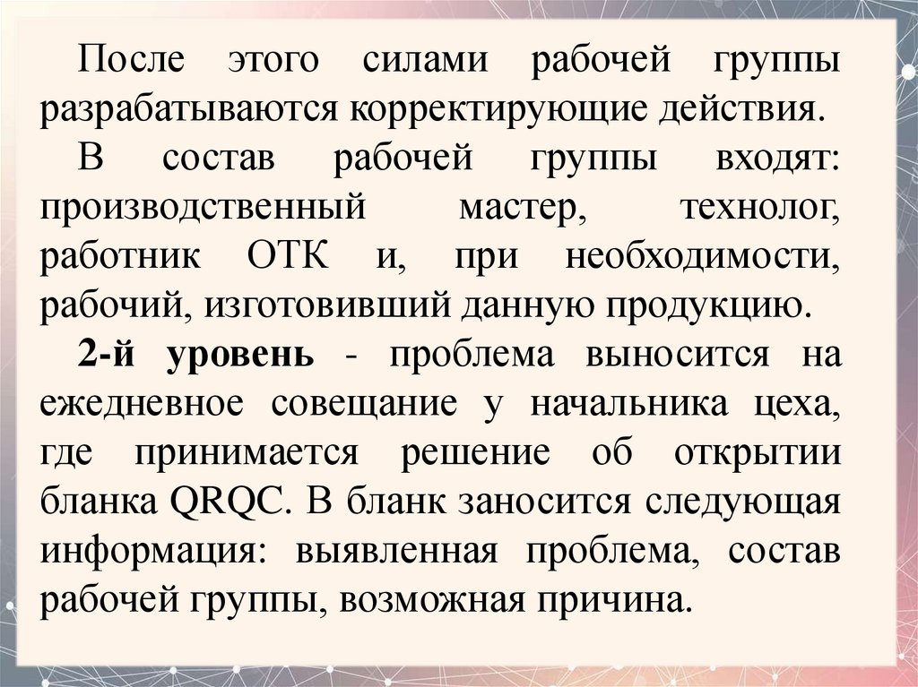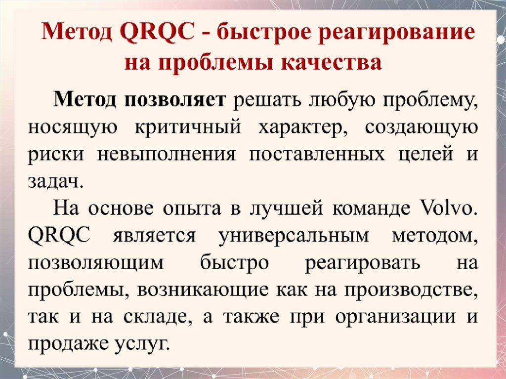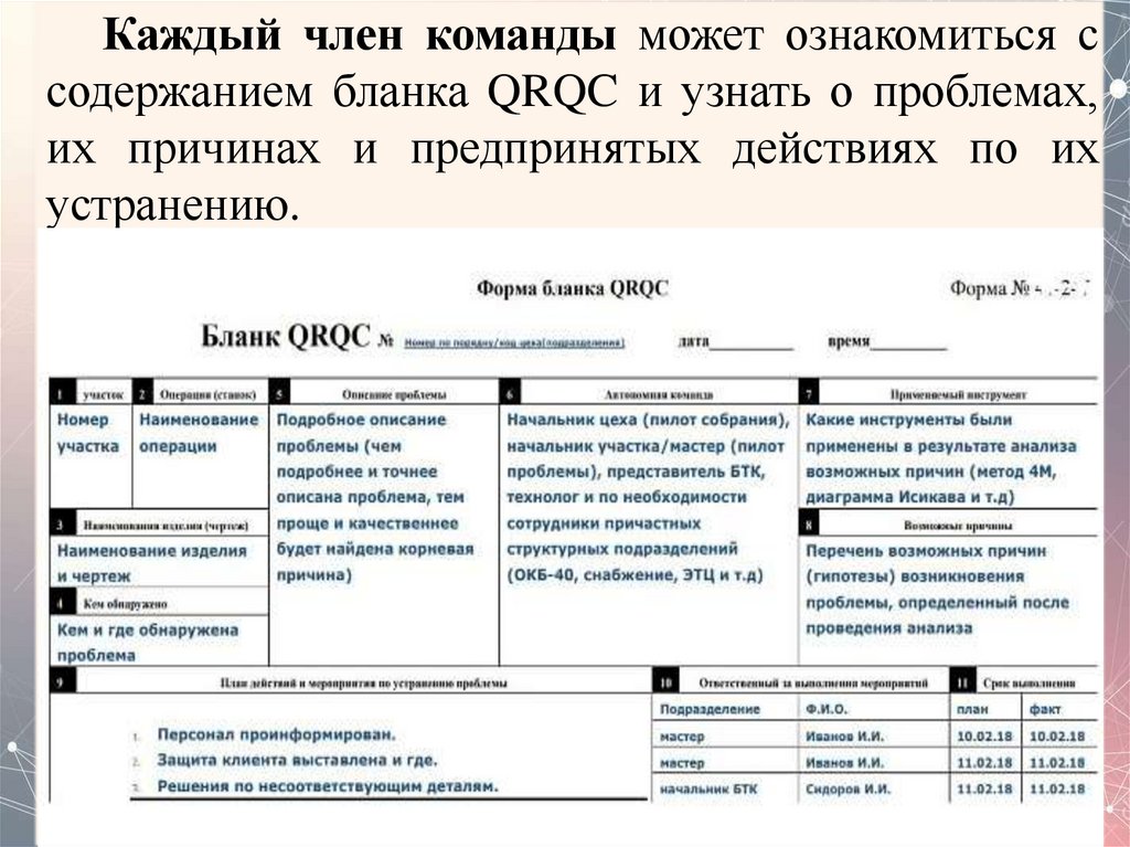 Каждый член команды может ознакомиться ссодержанием бланка QRQC и узнать о проблемах,