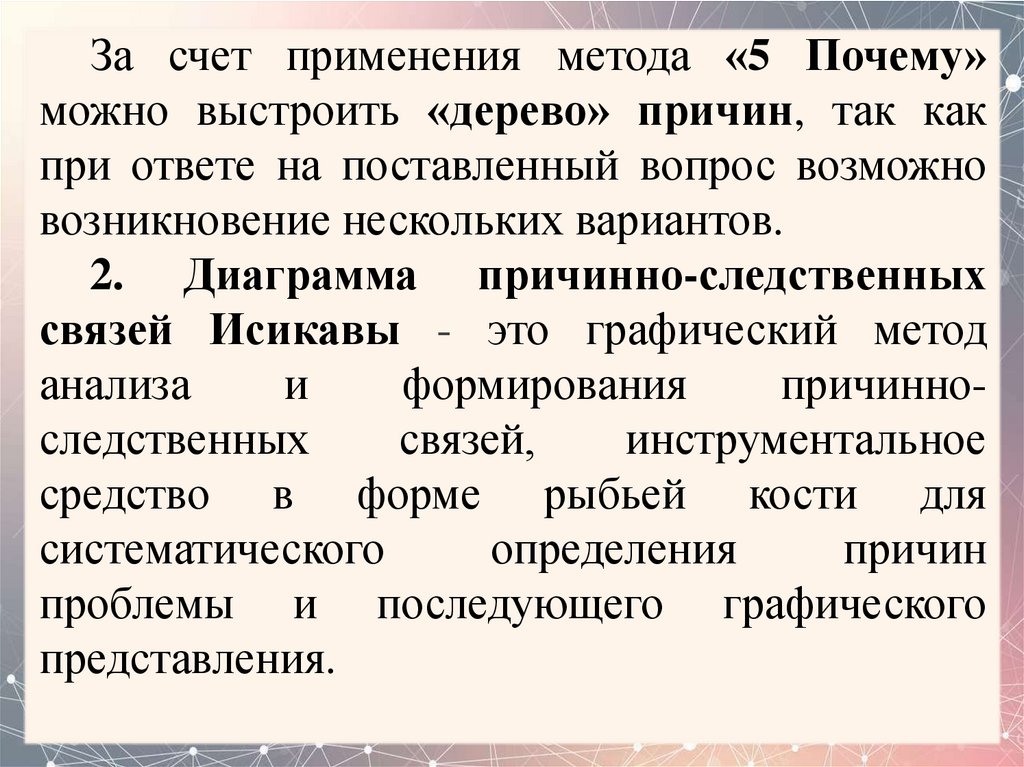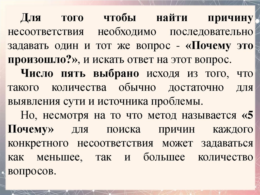 Этот метод позволяет докопаться докорневой причины и изменить процесс так,