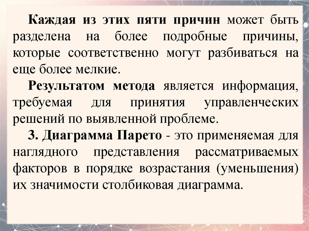 Каждая из этих пяти причин может бытьразделена на более подробные причины,