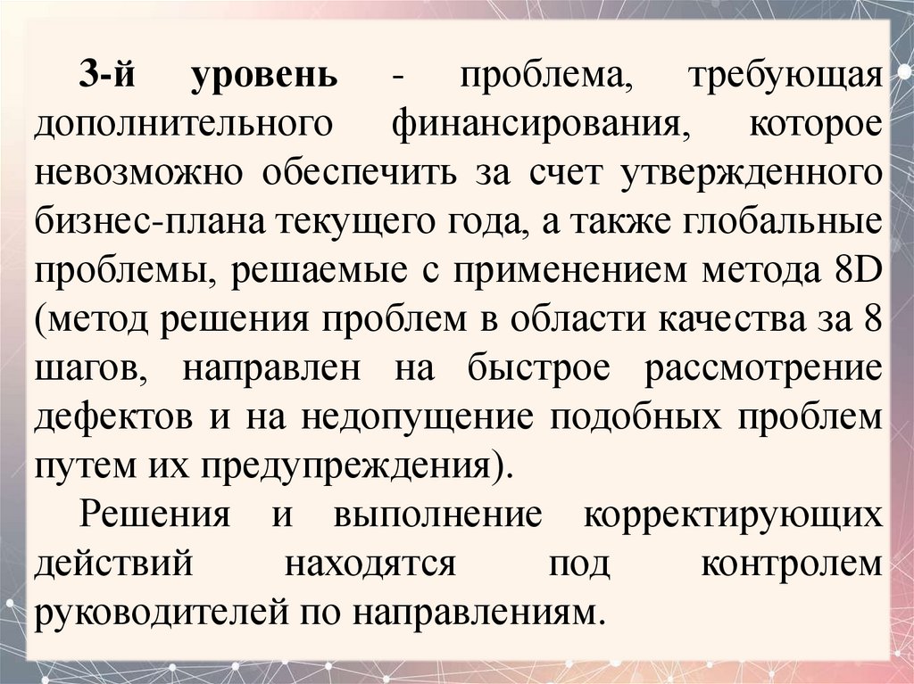 3-й уровень - проблема, требующаядополнительного финансирования, которое