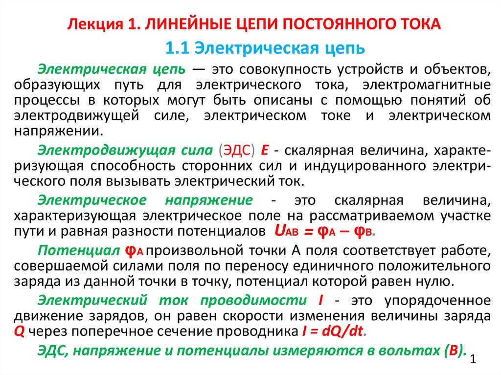 1. Лекция 1. ЛИНЕЙНЫЕ ЦЕПИ ПОСТОЯННОГО ТОКА