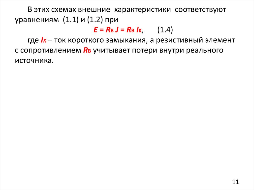 источников сопротивление часто называют внутренним RВ).