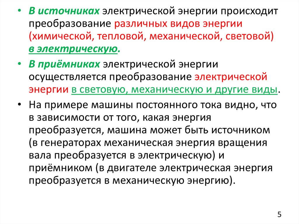 энергии в световую, механическую и другие виды.