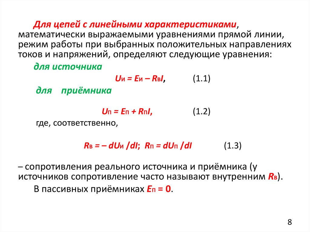 Для цепей с линейными характеристиками,математически выражаемыми уравнениями прямой линии,