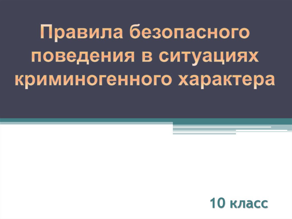 Презентация по основам безопасности жизнедеятельности на тему_ _Правила безопасного поведения в ситуациях криминогенного характера_ (10 кл